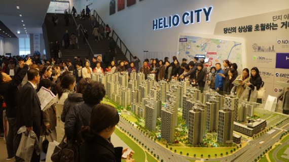 서울 송파구 가락시영을 재건축하는 '송파 헬리오시티' 견본주택에 주말 포함한 3일간 총 6만명이 방문해 가을 분양시장을 달궜다. 현대산업개발은 특히 비가 내린 13~14일에도 방문객들이 몰려 외부 대기시간만 1시간 30분에 달했다고 15일 밝혔다.