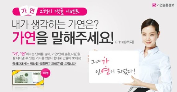 이는 '가연'의 각 단어를 내세워 결혼, 연애, 사랑 등의 내용이 담긴 2행시를 짓는 방식이다. 참여는 가연 공식 페이스북(https://www.facebook.com/gayeonlove) 페이지를 통해 가능하다.