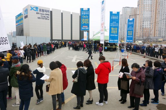 포항자이는 주말까지 7만여명 이상이 방문한 것으로 집계됐다. 포항시 남구 대잠동 98-46에 들어서는 포항자이는 지하2층~지상 34층 12개동 총 1567세대 규모 대단지다.