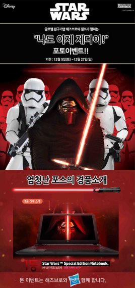 이벤트 참가 희망자는 해즈브로의 스타워즈 광선검을 들고 개성 있는 포즈를 취한 인증샷을 챔프, 애니원, 애니박스, 또는 카툰네트워크 중 한 애니메이션 채널의 이벤트 사이트에 올리면 된다. 광선검을 소지하고 있지 않은 참가자도 전국 대형 할인마트 완구 매장 내 스타워즈 존에 진열된 광선검 미개봉 제품을 들고 촬영한 사진으로 쉽게 응모할 수 있다.