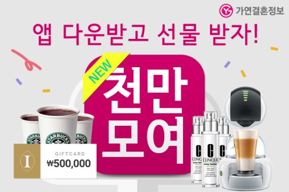 참여 방법은 간단하다. 안드로이드 구글 플레이나 애플 앱 스토어에서 '천만모여' 애플리케이션을 다운로드 한 후, 오는 31일까지 가입한 아이디를 천만모여 홈페이지(1000.gayeon.com)에 입력하면 된다.