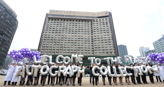 6일 서울시청광장에서 더 플라자 호텔 임직원들이 '웰컴 투 더 플라자 서울, 오토그래프 컬렉션' 알파벳 글자 세리모니를 진행하고 있다.더 플라자는 2016년부터 메리어트호텔그룹의 럭셔리 라이프 스타일 브랜드 오토그래프 컬렉션과 전략적 제휴를 통해 업그레이드 된 호텔을 선보인다. 오토그래프 컬렉션은 각 호텔이 위치한 나라 혹은 지역의 문화, 예술, 디자인 등이 호텔 시설,서비스 등 전반에 반영되어 운영되는 것이 특징이다.사진=김범석 기자