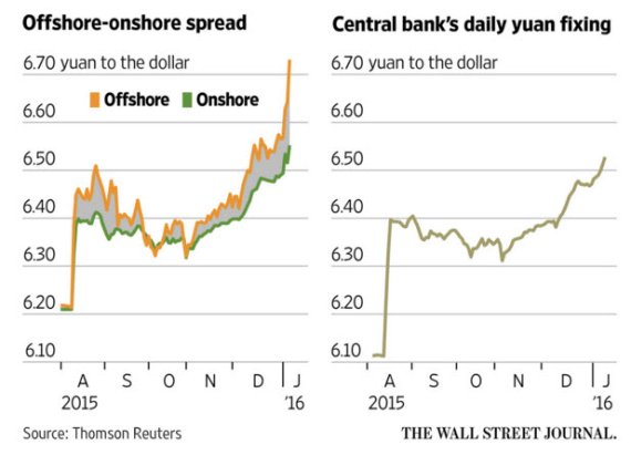 6일(현지시간) 파이낸셜타임스(FT), 월스트리트저널(WSJ), 블룸버그통신 등 주요 외신에 따르면 위안은 홍콩 역외시장에서 미국 달러당 6.7310위안까지 떨어지며 역외 시장 출범 5년만에 최저수준으로 하락했다.