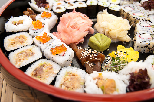 □ 스시 = 간편하게 먹기 좋기 때문에 1~2개 정도를 사먹는 경우가 있다. 초밥이 다 나쁜 것은 아니지만 마요네즈 소스가 들어있거나 튀김 등이 들어있는 롤은 좋지 않다. 스시보다는 생선만 먹거나 밥과 함께 먹을 경우는 쌀밥 대신 현미밥으로 대체한다.