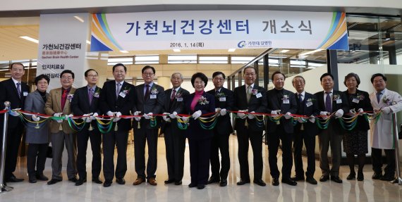 가천대 길병원은 지난 14일 가천홀(대강당) 및 본관 2층에 마련된 가천뇌건강센터에서 개소식을 개최했다. 이날 행사에는 가천길재단 회장이자 가천대학교 총장인 이길여 총장을 비롯해 황우여, 홍일표, 박남춘, 윤관석, 홍영표 국회의원, 노경수 인천광역시의장, 김경현 대한노인회 인천시연합회장정윤순 보건복지부 노인정책과장, 강신원 인천시 보건복지국장, 김상윤 대한치매학회 이사장, 이성희 한국치매가족협회장, 서유헌 가천뇌과학연구원장 등 내외 귀빈 400여 명이 참석했다.