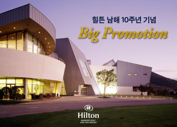 힐튼 남해 '10주년 기념 빅 프로모션'은 힐튼 월드와이드 공식 홈페이지를 통해 힐튼 남해 예약 시 객실 요금의 50%를 할인 받을 수 있으며 1월 24일 오후 2시부터 1월 27일 오후 2시까지 72시간 동안만 진행된다. 숙박 가능 기간은 2016년 1월 27일부터 6월 30일까지이며 공휴일, 연휴 및 토요일을 제외한 일요일부터 금요일까지 숙박에 적용된다.