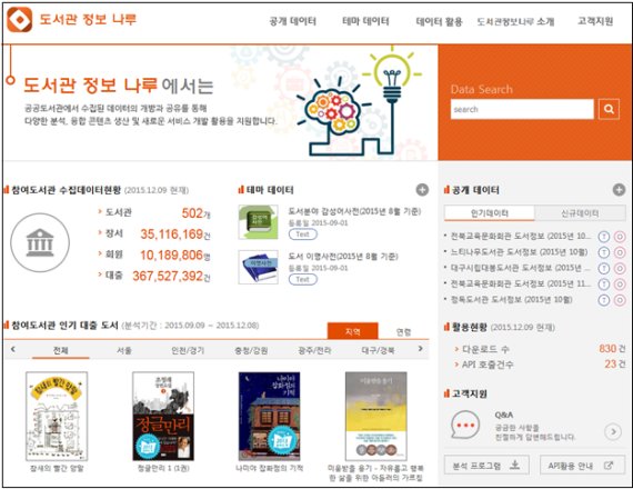 문화체육관광부는 전국 282개 공공도서관의 데이터를 수집·저장·분석하여 사서, 연구자, 일반 국민들에게 맞춤 서비스를 제공하는 '도서관 정보 나루'와 과학적인 도서관 경영을 지원하는 '사서의사결정지원시스템' 서비스를 이달부터 한국과학기술정보연구원과 함께 운영한다고 밝혔다.