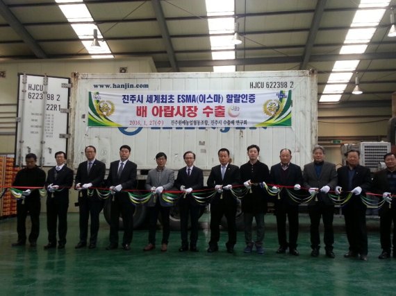 경남도는 27일 진주시 문산읍 진주원예농협 선별장에서 신선농산물 세계 최초로 '진주배'가 UAE 할랄인증을 받아 두바이에 첫 수출하는 선적식을 가졌다고 밝혔다.