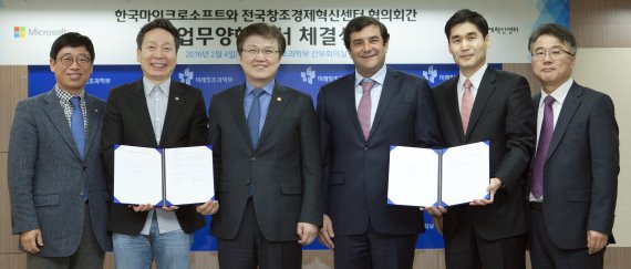 협의회와 한국MS는 △스타트업 및 개발자를 위한 실무.기술교육프로그램 개발 및 실시 △지역 유망 스타트업 및 중소기업의 글로벌 진출 지원 △청소년과 여성 대상 진로.창업교육을 포함한 SW학습 프로그램 및 행사 △창조경제혁신센터의 지역 특화 전략산업 분야에 대한 기술지원 등 총 7개 부문에 대해 적극 협력키로 했다.