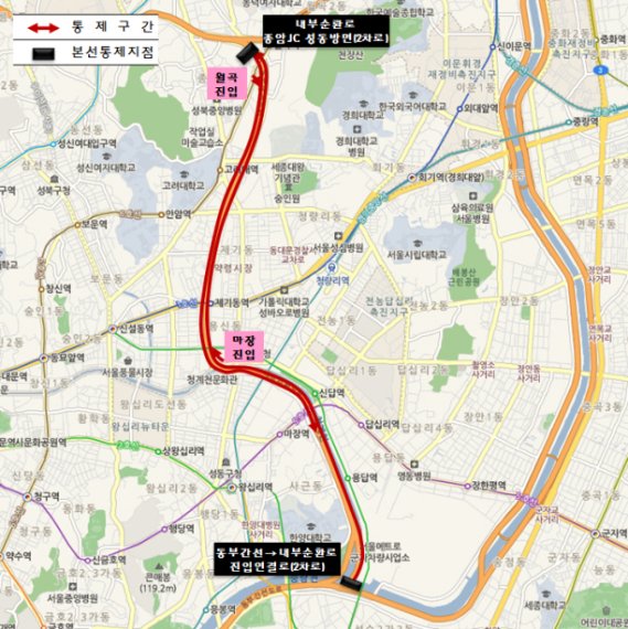 서울 마장동과 동부간선도로를 잇는 정릉천 고가도로가 22일부터 전면통제(노선도)된다.