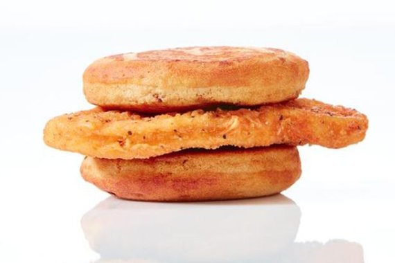 논란의 음식은 치킨과 팬케이크로 만든 단순한 아침 샌드위치로, 치킨 맥그리들 기간 한정 메뉴다.