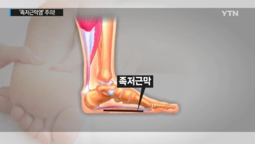 족저근막염 자가치료족저근막염이란 종골(calcaneus)이라 불리는 발뒤꿈치뼈에서 시작하여 발바닥 앞쪽으로 5개의 가지를 내어 발가락 기저 부위에 붙은 두껍고 강한 섬유띠를 말하다. 발의 아치를 유지하고 충격을 흡수하며 체중이 실린 상태에서 발을 들어 올리는 데 도움을 주어 보행 시 발의 역학에 중요한 역할을 한다.이러한 족저근막이 반복적인 미세 손상을 입어 근막을 구성하는 콜라겐의 변성이 유발되고 염증이 발생한 것을 족저근막염이라 한다. 성인의 발뒤꿈치 통증의 대표적 원인 질환으로 알려져 있다.