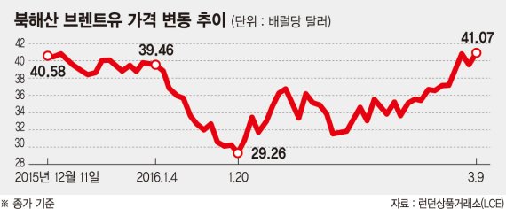 9일(이하 현지시간) 미국 경제전문방송 CNBC 등에 따르면 국제유가는 재고 증가 소식에도 미국의 수요가 기대 이상으로 양호하다는 통계에 올해 최고치로 상승했다. 이날 북해산 브렌트유는 런던선물시장에서 배럴당 41.07달러까지 상승했고 미국 서부텍사스산원유(WTI)도 뉴욕선물시장에서 배럴당 38.51달러까지 올랐다. 올해 최고치인 지난 1월 4일(40.50달러) 이후 가장 높다.