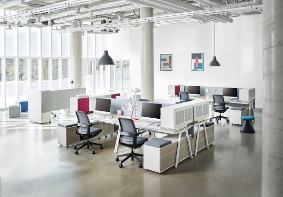 인에이블 앤 인라이트 시리즈는 세계적인 건축설계 및 오피스 디자인 기업 겐슬러(Gensler)와 협업한 오피스 시스템 가구다. 배선기능은 책상에 내장하고, 얇고 가벼워진 패널로 설치와 이동이 보다 편리하도록 했다.