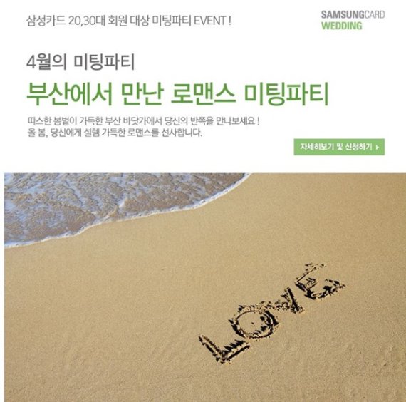 이번 파티는 삼성카드 회원 중 20~30대 미혼 남녀 각 8명(총 16명)을 대상으로 하는 행사로 참가비는 전액 무료다. 이날 행사에서는 아이스 브레이킹 및 다양한 커플게임, 테이블 대화 등의 프로그램이 진행 될 예정이다.