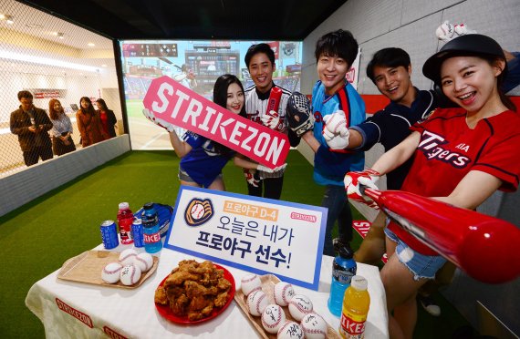 골프존유원그룹 자회사 뉴딘콘텐츠가 28일 오전 서울 송파구 잠실동 스트라이크존 잠실구장에서 스크린야구 스트라이크존 가맹 1호점 론칭행사를 하고 있다. 스트라이크존은 실제 야구장의 현장감을 체험할 수 있도록 최고 수준의 그래픽과 센서를 통한 정확한 타구 방향측정등 스크린골프로 인정받은 골프존의 기술력을 기반으로 현실감 있는 야구 게임을 위한 Full HD 그래픽의 경기장 재현은 물론 경기 중계와 응원, 효과음 등 현장감을 살리기 위한 풍부한 사운드 효과가 강점이다./사진=박범준 기자