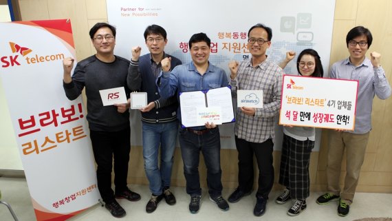 3일 SK텔레콤에 따르면 지난 '브라보! 리스타트' 3기들의 경우 프로그램 참가 중 주로 투자유치 실적을 거뒀던 것과 비교해 지난 1월 말 선정한 '브라보! 리스타트' 4기 업체 12곳 가운데 3곳은 솔루션 판매, 공급계약 체결 등의 실질 성과를 거두었다고 밝혔다.
