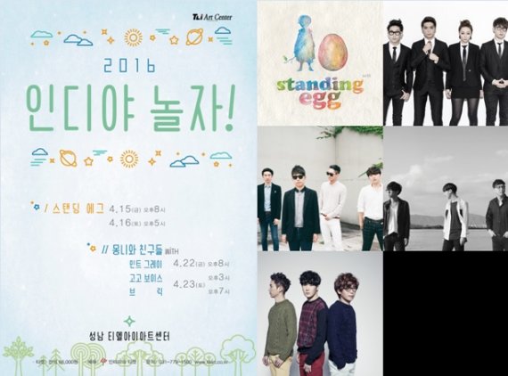 먼저 15~16일에는 최근 싱글 앨범을 발표한 스탠딩에그의 단독콘서트가 열린다. 스탠딩에그는 프로필이 알려지지 않은 에그1호(작곡), 2호(작곡), 3호(작사)로 구성된 어쿠스틱 프로듀싱 유닛이다. '넌 이별, 난 아직' '햇살이 아파' '오래된 노래' 등 다수의 곡이 사랑받으며 달콤하고 편안한 어쿠스틱 음악의 대표주자로 떠올랐다. 발라드, 포크, 락, 알앤비(R&B), 재즈에 이르기까지 폭넓은 음악을 선보이고 있다.