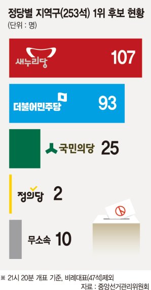 이 밖에 다른 11개 지역구에선 새누리당의 압승이 예상된다.