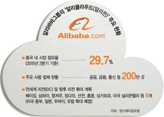 중국 알리바바의 '비밀병기'인 '알리클라우드(AliCloud·알리윈)'가 국내에 전격 진출한다. 알리바바의 클라우드컴퓨팅(클라우드) 자회사인 알리클라우드가 뱅크웨어글로벌 등 국내 정보통신기술(ICT) 업체와 손잡고 한국 클라우드 시장에 도전장을 내민 것.