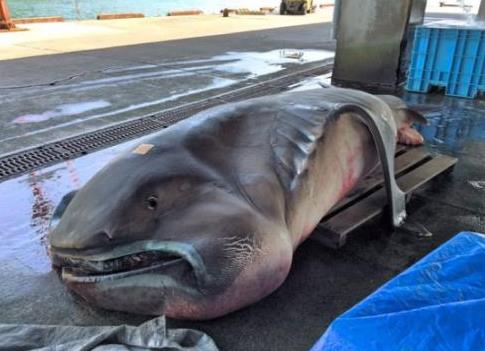 16일(현지시간) 일본 규슈 구마모토현을 강타한 규모 7.3의 강진이 발생하기 하루 전날인 15일 일본 미에현 오와세 항구에서 희귀 심해 상어 '메가마우스'가 잡혔다.