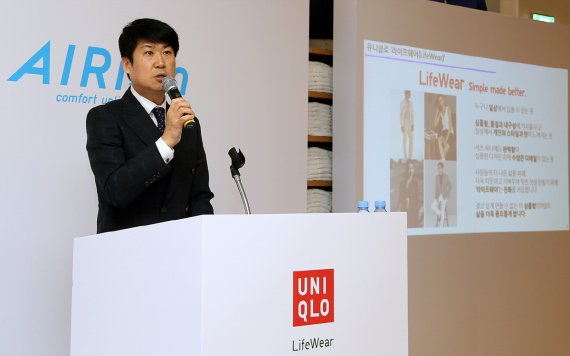 에프알엘코리아 유니클로 홍성호 대표(사진)는 22일 서울 광화문 D-Tower점에서 '기능성 이너웨어' 에어리즘 출시 간담회를 열고 이같이 밝혔다. 홍 대표는 "에어리즘은 세계적인 섬유회사인 도레이, 아사히 카세이와 공동개발한 기능성 제품으로 올해 출시된 신제품은 땀을 즉각 건조시키고 뛰어난 소취기능으로 냄새를 빠르게 흡수할 수 있게 했다"고 말했다.