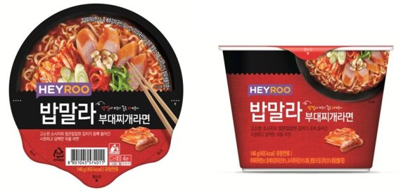 밥말라 부대찌개라면은 얼큰한 의정부식 부대찌개 맛을 내기 위해 김치와 소시지를 원물 그대로 레토르트 파우치에 각각 담았다.