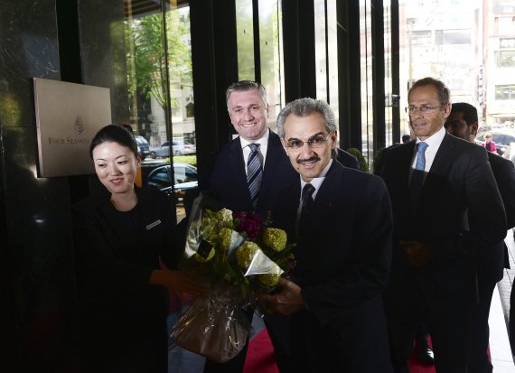 포시즌스 호텔 앤 리조트의 빌 게이츠와 함께 최대 주주인 사우디아라비아의 알 왈리드 빈 탈랄(Al Waleed Bin Talal) 왕자가 16일 오후 내한해 포시즌스 호텔 서울 총지배인 루보쉬 바타(Lubosh Barta)와 함께 인사를 나누고 있다. 왈리드 왕자는 박현주 미래에셋그룹 회장을 만나기 위해 방한했다. 미래에셋자산운용은 지난 2013년 포시즌스호텔앤리조트와 호텔 위탁 운용계약을 체결하고 3400억원 규모의 부동산펀드를 조성해 포시즌스호텔을 완공했다. 현재 미래에셋자산운용은 포시즌스호텔의 지분 60%를 보유 중이다.