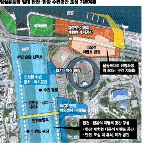 서울시는 지난달 발표한 '잠실운동장 일대 마스터플랜'의 일환으로 잠실운동장 일대 탄천.한강변 수변공간 조성 기본계획을 수립한다고 24일 밝혔다.