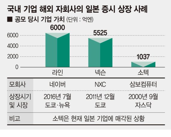 이 같은 수준에도 라인의 기업가치는 올해 일본증시에 상장된 기업의 조달 규모 가운데 최대로 꼽히고 올해 미국 증시에 상장된 기업 중에선 세번째 규모가 될 만큼 대어로 평가된다.