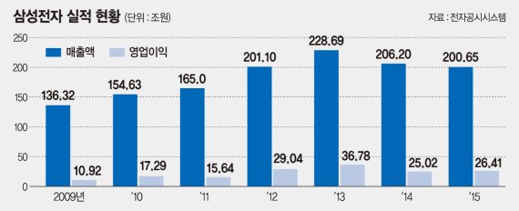 2013년 30조원을 훌쩍 넘긴 삼성전자의 연간 영업이익이 2014년 25조원 수준으로 급감했다. 올해도 연간 영업이익은 2013년에 미치지 못할 것이라는 관측이 우세하다.