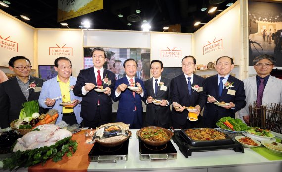 이마트,전통시장 우수상품 페어 개최 이마트는 6월30일 서울 삼성동 코엑스에서 전통시장 우수상품을 '스타상품'으로 육성하기 위한 '제2회 전통시장우수상품페어'을 개최했다. 김군선 신세계TV쇼핑 대표, 진병호 전국상인연합회 회장, 주영섭 중소기업청장, 장병완 국회 산업통상자원위원회 위원장, 김해성 이마트 부회장, 안충영 동반성장위원회 위원장, 이일규 소상공인시장진흥공단 이사장(왼쪽부터)이 전통시장 먹거리를 시식하고 있다.