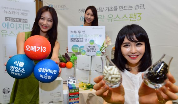 뉴스킨 코리아가 6일 오전 서울 세종대로 세종문화회관 예인홀에서 건강기능식품 '에이지락 유스스팬3' 출시 기념 행사를 열었다. 이번 신제품은 기존 해외에서 선보인 제품을 업그레이드해 한국에서 단독 출시한 것으로 오메가-3. 비타민&미네랄, 식물영양소 등 총 13종의 비타민과 9종의 미네랄 성분을 함유했다./사진=서동일 기자
