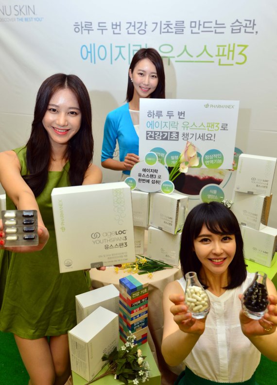 뉴스킨 코리아가 6일 오전 서울 세종대로 세종문화회관 예인홀에서 건강기능식품 '에이지락 유스스팬3' 출시 기념 행사를 열었다. 이번 신제품은 기존 해외에서 선보인 제품을 업그레이드해 한국에서 단독 출시한 것으로 오메가-3. 비타민&미네랄, 식물영양소 등 총 13종의 비타민과 9종의 미네랄 성분을 함유했다./사진=서동일 기자