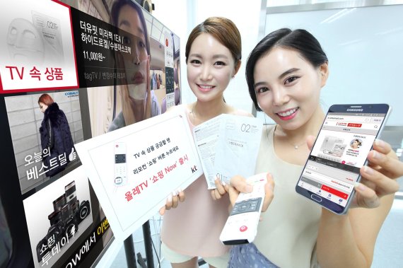 KT는 인터넷TV(IPTV) '올레TV' 시청 중 빅데이터 분석에 기반해 콘텐츠와 관련된 상품 정보를 제공하는 TV-모바일 연계 쇼핑 서비스 '쇼핑 나우(Now)'를 시작한다고 10일 밝혔다.