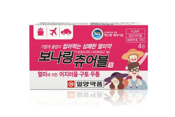 일양약품은 멀미로 인한 어지러움, 구토, 두통의 예방 및 완화에 도움을 주는 멀미약 '보나링 츄어블정'(사진)을 출시했다고 18일 밝혔다.