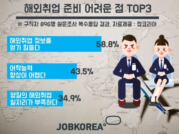 해외취업을 준비하는 구직자 10명 중 8명은 ‘해외취업 정보를 얻기 어렵다’고 생각하는 것으로 나타났다.