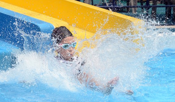 서울에 올 들어 처음으로 폭염경보가 발효되는 등 전국적으로 찜통더위가 이어진 4일 서울 용산 아이파크몰 수영장에서 한 어린이가 물놀이를 하며 더위를 식히고 있다. 사진=김범석 기자