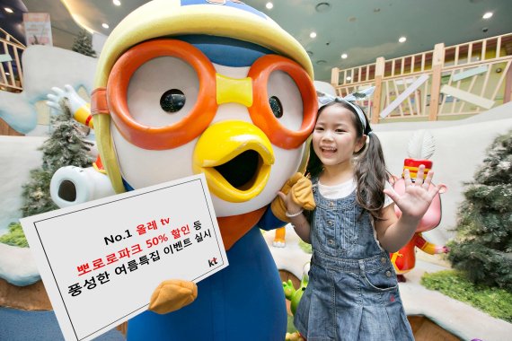 KT는 여름휴가 및 방학 시즌을 맞아 인터넷TV(IPTV) 올레tv에서 여름 특집관을 운영하고 100원관 VOD를 구매하면 뽀로로파크 입장권 50% 할인 쿠폰을 제공하는 이벤트를 진행한다고 12일 밝혔다.