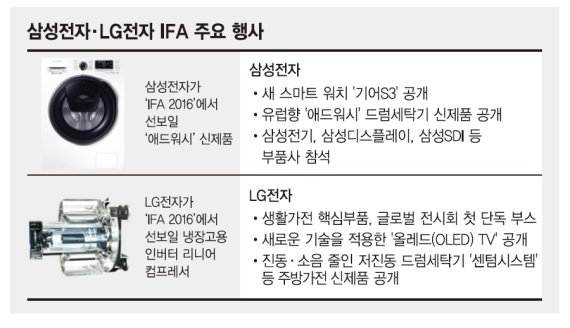 삼성전자와 LG전자가 독일 베를린에서 열리는 유럽 최대 가전전시회 'IFA 2016'서 '차별화' 전략으로 유럽 시장 공략에 본격 나선다.