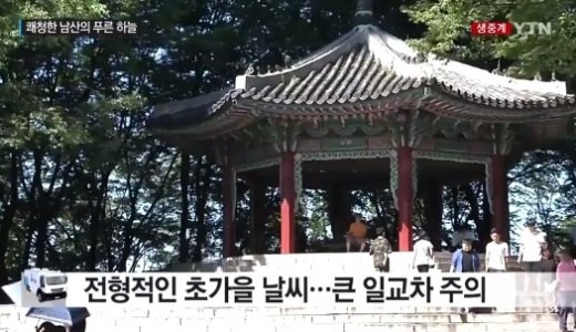 27일 전국적으로 무더위가 물러가고 초가을 날씨를 보이고 있다.오늘 오전 서울의 아침 기온은 17.7도를 기록, 계속되던 열대야 현상이 사그라들었다.이외에도 춘천 13.2도, 강릉 15.3도, 대구 18.8도 등 대부분 지역의 최저기온이 20도 아래로 떨어져 아침에는 전국적으로 초가을 날씨가 이어졌다.33도를 웃돌던 낮기온 역시 30도 밑으로 내려가면서 무더위가 한풀 꺾이고 있다. 이로 인해 일교차가 10도 이상 차이가 나겠으며, 외출시에는 겉옷을 챙기는 등 건강에 유의하는 것이 좋다.