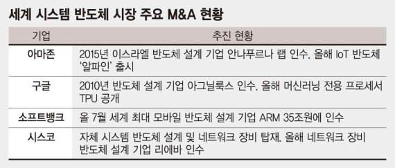 인텔 등 글로벌 반도체 시장의 강자 뿐 아니라 구글, 아마존, 소프트뱅크 등 정보기술(IT) 기업들까지 사물인터넷(IoT) 중심의 시스템 반도체 분야에 공격적으로 뛰어들면서 세계 반도체 시장의 지각변동이 본격화되고 있다.