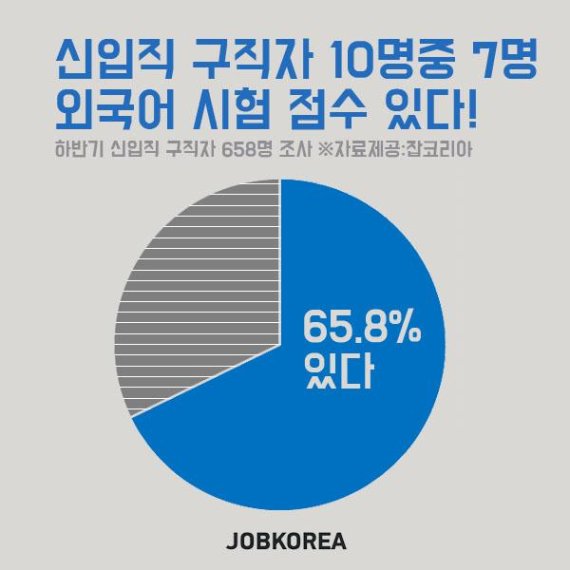 올해 하반기 신입직 취업을 준비하는 구직자 10명 중 7명은 외국어 시험성적을 보유하고 있는 것으로 나타났다.
