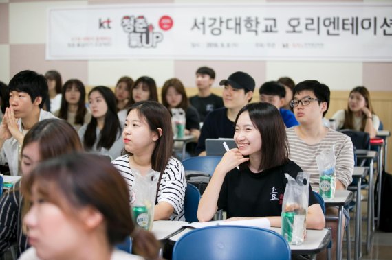 아울러 KT는 2학기를 맞아 '청춘기업' 산학협력 프로그램도 대폭 강화했다. 단국대, 서강대, 성신여대, 숙명여대, 한국외대 5개 대학이 프로그램에 참여했다. KT는 사내 전문가의 임직원 특강, 광고 홍보 실무 교육 강화를 위한 KT그룹사 현장 체험, 참여 대학 출신 KT 직원의 멘토링 등을 제공한다.