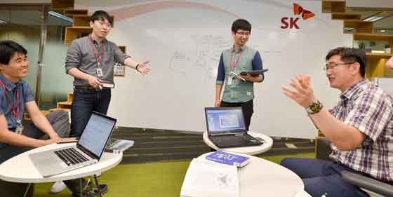 SK주식회사C&C가 조직, 직급의 경계를 허물고 같은 주제에 관심있는 구성원들이 모여 새로운 정보통신기술(ICT) 신규 사업 모델을 발굴, 연구 개발하는 '테크 콜라보 랩'을 운영한다고 26일 밝혔다.