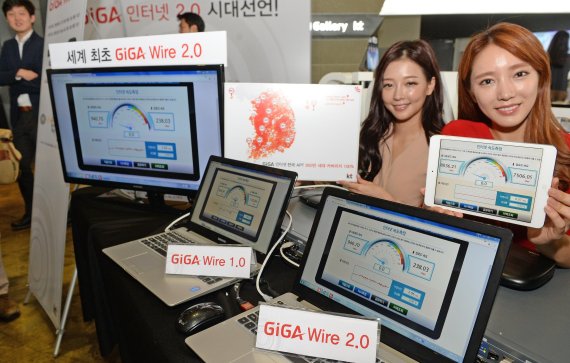 '기가 인터넷 2.0'은 △전국 2만7000여 아파트 단지(약 980만 세대) 기가 투자 완료 △전화선(구리선) 기반에서도 1Gbps 속도를 구현하는 '기가와이어 2.0' 솔루션 상용화 △최대 1.7Gbps 속도를 제공하는 와이파이 서비스 '기가 와이파이 2.0' 출시 △초고속 인터넷(100Mbps)보다 100배 빠른 10Gbps 인터넷 등 4가지 방향으로 추진된다.