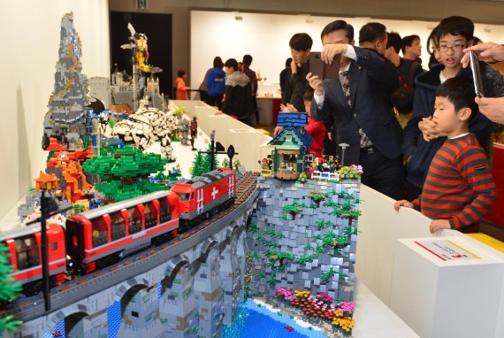 국내 최대 규모의 레고 블록 전시회인 '2016 브릭코리아 컨벤션-브릭, 예술이 되다'가 22일 경기 성남시 판교역로 현대백화점 판교점 10층 토파즈홀에서 오는 30일까지 총 9일간 진행된다. 올해 4회째를 맞는 '브릭코리아 컨벤션은 지난해 7만 여명의 관람객이 다녀가는 등 국내 레고 마니아들의 최대 축제다. 23일 휴일을 맞아 전시장을 찾은 시민들이 작품을 감상하고 있다./사진=서동일 기자