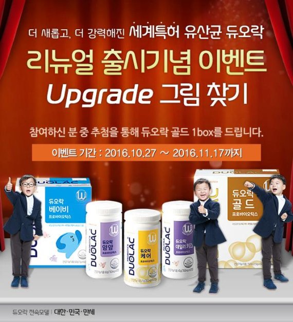 쎌바이오텍이 세계 특허 프로바이오틱스 '듀오락' 리뉴얼을 기념해 업그레이드 그림 찾기 이벤트를 진행한다고 10월31일 밝혔다.