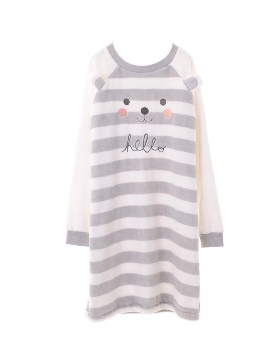 먼저, ‘허그 수면 원피스’는 털이 길고 포근한 부클레 원단을 전체적으로 적용하고 양털 느낌의 부드러운 쉘파 소재를 부분적으로 더해 보온성을 높인 제품이다. 연한 핑크 컬러 바탕에 귀여운 자수와 도트 패턴으로 포인트를 살렸다.