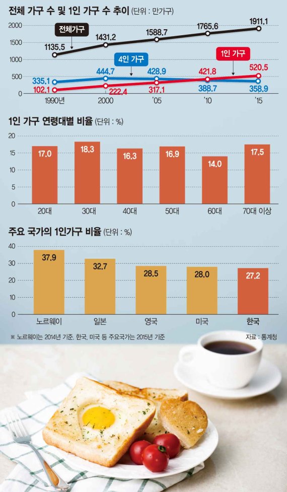 통계청이 발표한 2015년 인구통계를 살펴보면 우리나라의 1인 가구는 500만을 돌파했다.
